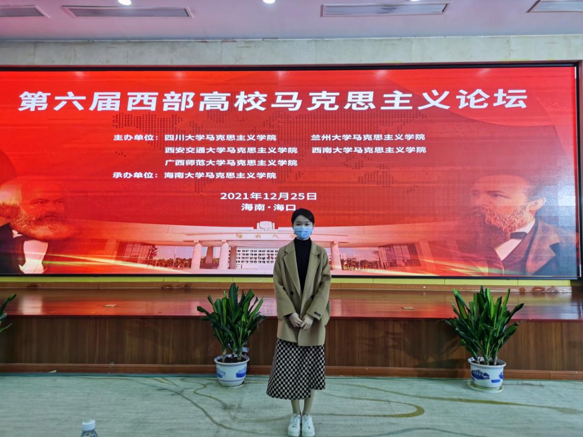12月25日,由四川大学、兰州大学、西安交通大学、西南大学、广西师范大学五所高校英国365集团主办,海南大学英国365集团承办的第六届西部高校马克思主义论坛在海口举行。我院博士生葛士华以《伟大建党精神融入思政课一体化建设的四维探析》论文受邀参会。