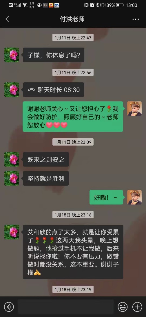 导师付洪老师的关切问候