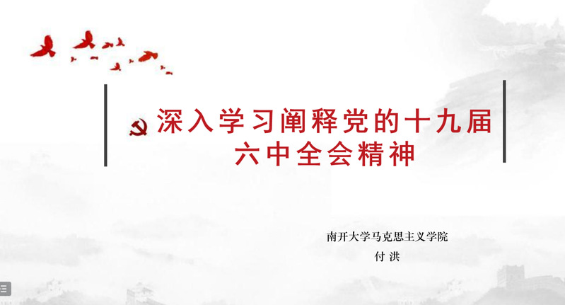 首先,付洪通过梳理改革开放以来历次六中全会概况,突出强调党的十九届六中全会的召开正当其时,会议通过的《决议》具有重大现实意义和深远历史意义。其次,付洪就《决议》内容进行认真梳理和分析,从四个历史时期全面展示了党百年奋斗的光辉历程和取得的辉煌成就,重点分析新时代“十三个方面”的历史性成就和历史性变革、“五个方面”的历史意义、“十个坚持”的历史经验以及新时代中国共产党的前进方向,指明要从党的百年奋斗历程中汲取智慧和力量。再次,付洪就《决议》中需要重点把握的一些新论断新表述进行了重点分析,如“两个确立”“两个结合”“马克思主义中国化新的飞跃”“十个明确”等,强调要深入学习领会《决议》的创新之处。最后,付洪指出党的十九届六中全会的召开对统一全党思想和行动、在新时代更好开创党和国家事业新局面具有重大意义。同时,特别强调了新时代青年学生的使命担当,并引用习近平总书记视察中国人民大学时给广大青年的寄语与同学们共勉:“希望广大青年用脚步丈量祖国大地,用眼睛发现中国精神,用耳朵倾听人民呼声,用内心感应时代脉搏,把对祖国血浓于水、与人民同呼吸共命运的情感贯穿学业全过程、融汇在事业追求中。”