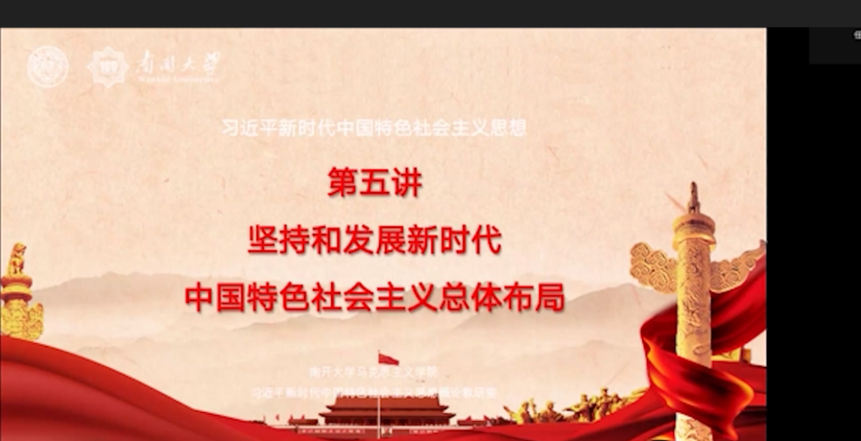 任老师指出,第五讲是本门课程的有机组成部分,需要我们在总体理论体系、课程体系、教学体系当中进行把握。“五位一体”总体布局是一个有机整体,其中经济建设是根本,政治建设是保证,文化建设是灵魂,社会建设是条件,生态文明建设是基础。坚持“五位一体”建设全面推进、协调发展,才能形成经济富裕、政治民主、文化繁荣、社会公平、生态良好的发展格局。她表示,讲授部分主要分为六个部分,即“新发展理念:关系我国发展全局的一场深刻变革”、“经济建设:实现经济高质量发展”、“政治建设:发展社会主义民主政治”、“文化建设:推动社会主义文化繁荣兴盛”、“社会建设:带领人民创造更加幸福美好生活”、“生态文明建设:建设美丽中国”。在授课内容方面,任老师将习近平总书记的重要讲话与历史发展脉络相结合,帮助学生深刻把握中国特色社会主义事业总体布局并深刻理解五大建设的丰富内涵。任老师对这一讲授课中许多需要注意的问题作了提示。例如,她强调,要正确把握“中国传统文化与马克思主义的辩证关系”,二者非但没有对立,恰恰相反,中华优秀传统文化是马克思主义中国化的本土文化之根。