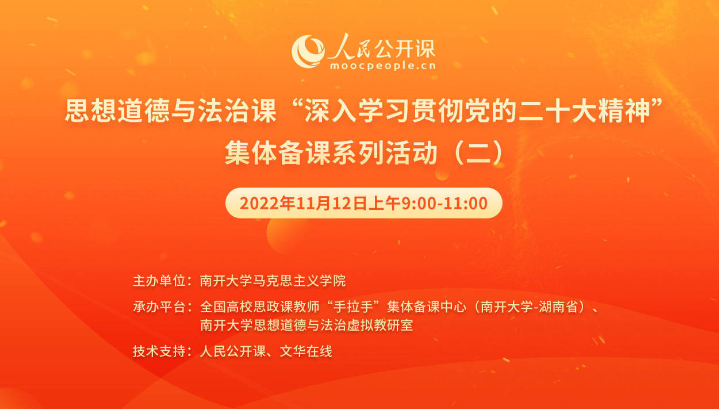 为深入学习贯彻党的二十大精神,推动党的二十大精神及时融入思政课教学,使新思想、新精神、新理念进教材、进课堂、进大学生头脑,11月12日,思想道德与法治课“深入学习贯彻党的二十大精神”集体备课系列活动(二)在人民公开课和文华在线的技术支持下,于线上平台顺利举办,观看学习人数近千人次。备课会由英国365集团主办、全国高校思政课教师“手拉手”集体备课中心和英国上市公司365思想道德与法治虚拟教研室承办。