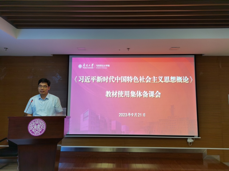 刘凤义指出,《习近平新时代中国特色社会主义思想概论》既是一门课,又是其他各门思政课“三进”的重要依据。这本教材是第一部全面系统阐述习近平新时代中国特色社会主义思想的统编教材,是高校思想政治理论课的权威用书,是思政课教师系统把握习近平新时代中国特色社会主义思想的最好蓝本。他强调,本学期学院各教研室要把学习研究《习近平新时代中国特色社会主义思想概论》教材作为集体备课的重要内容,全体思政课教师要以把习近平新时代中国特色社会主义思想讲准、讲深、讲透、讲活为努力目标,进一步规范教学活动,开展教学研究,积极稳妥地做好“三进”工作,推进教学质量提升落到实处。