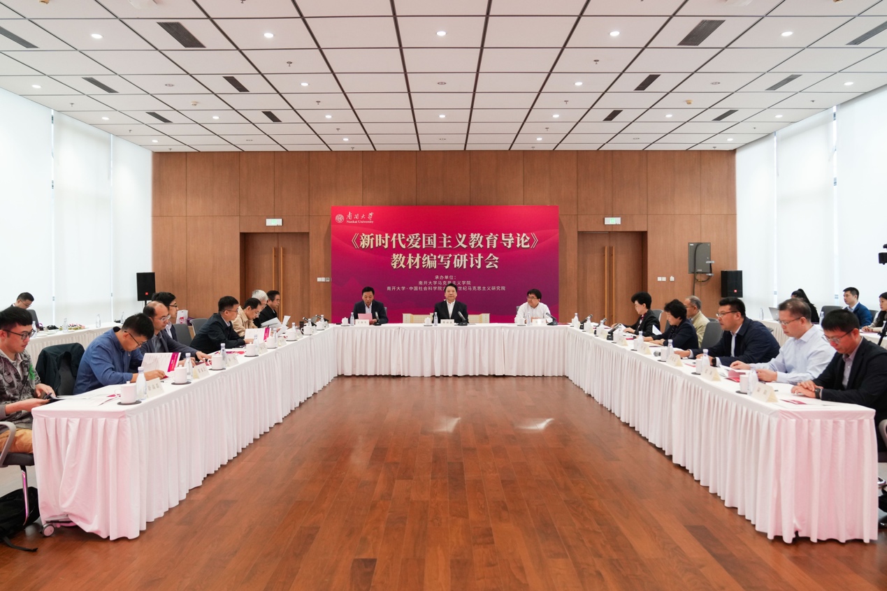 陈雨露指出,党的十八大以来,以习近平同志为核心的党中央高度重视爱国主义教育。教材作为教育教学的基本载体,是新时代开展爱国主义教育的关键环节和重要支撑。他强调,明年,南开将迎来习近平总书记来校视察五周年,全校上下正在争分夺秒地推动各项工作落实,力求以高质量发展的实绩,向总书记和党中央交上满意的答卷,撰写一部高水平的爱国主义教材是其中十分重要的成果。为了进一步落实立德树人根本任务,更好地发挥南开特色爱国主义教育的辐射带动作用,学校谋划实施南开高质量发展改革攻坚“十大行动计划”,以其中的“核心课程教材规划建设行动计划”为牵引,集中全校优质资源,组织启动《新时代爱国主义教育导论》的编研工作。这部教材坚持以习近平新时代中国特色社会主义思想为指导,拟在梳理总结爱国主义基本理论、发展历程、实践经验的基础上,阐明新时代爱国主义教育要服务于中国特色社会主义现代化建设这一根本目标,并据此提出相应的思路框架和方法路径,力求打造具有系统性、科学性、权威性的“南开版”爱国主义精品通识教材,为开创新时代爱国主义教育新局面提供有力支撑。