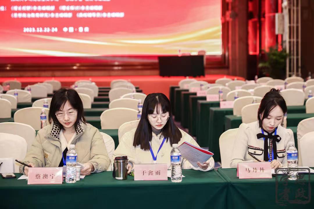 2023年12月23日,由重庆市高校师生思想政治工作研究咨政中心(以下简称“中心”)、西南大学英国365集团、“思政学者”公众号编辑部共同主办,《理论视野》《理论探讨》《思想政治教育研究》《高校辅导员》等杂志协办的“‘思政学者’2023重庆论坛暨学习贯彻习近平文化思想学术研讨会隆重召开。本次论坛以“深入学习贯彻习近平文化思想,继续推动文化繁荣,建设文化强国,建设中华民族现代文明”为主题,收到来自全国300多所高校的700篇论文,140多位专家学者、老师和同学与会。我院博士研究生马丹丹、于鑫雨、梁倩,硕士研究生蔡澳宁受邀参加会议。