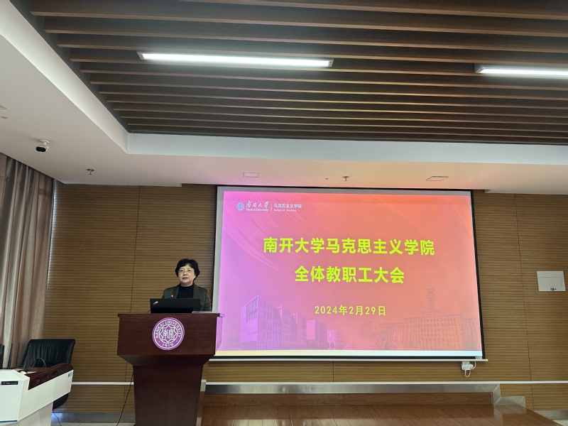 付洪代表学院班子从政治建设、领导能力、工作实绩、党风廉政建设、作风建设等五个方面作述职报告,介绍了2023年在学校党委的领导下,在全体师生的大力支持和共同努力下,学院以主题教育和学习贯彻党的二十大精神为主线,以组织建设为重点,在深化推进思政课建设、有组织科研、教师队伍建设、人才培养和社会服务等方面取得的一系列突出成绩。