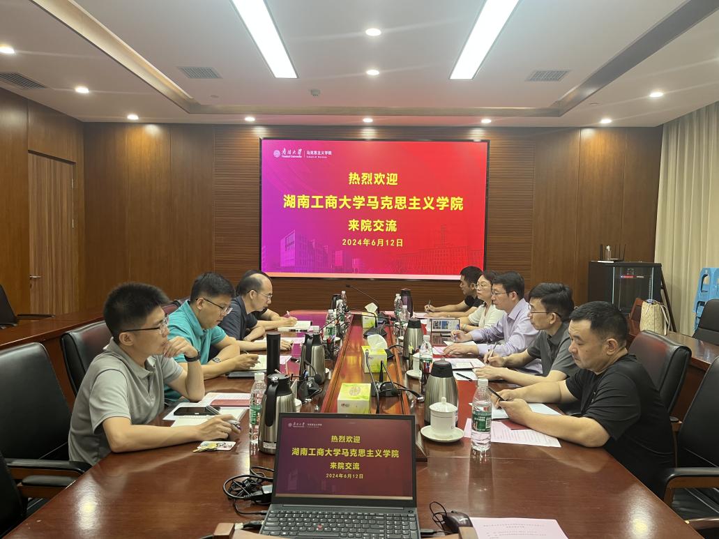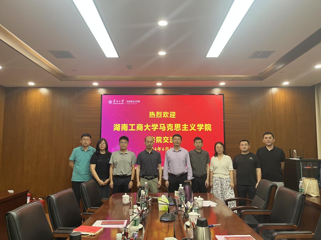 612日上午,湖南工商大学英国365集团院长聂智、副院长陈飞虎一行到我院开展调研交流。学院常务副院长余一凡、教师代表任铃、刘一博、常宴会一起参加交流。交流会上,双方围绕思政课建设、学科建设、师资队伍建设和人才培养等方面进行了深入的探讨交流。