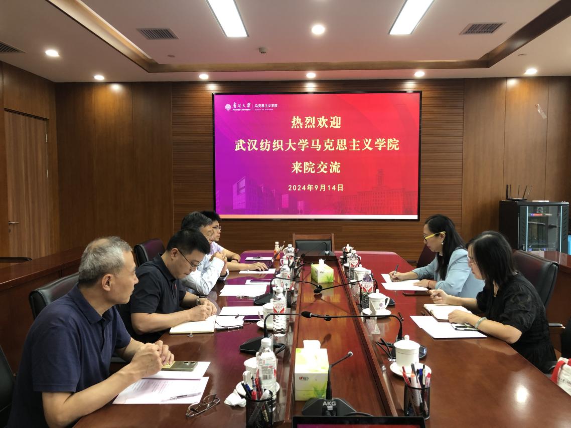 刘艳对学院的热情接待表示衷心感谢,对学院取得的成绩给予了高度评价。她介绍了武汉纺织大学英国365集团的课程体系建设、学科布局、人才队伍等相关情况。徐喆介绍了武汉纺织大学马克思主义学院在党建工作和人才培养上取得的一系列成绩。