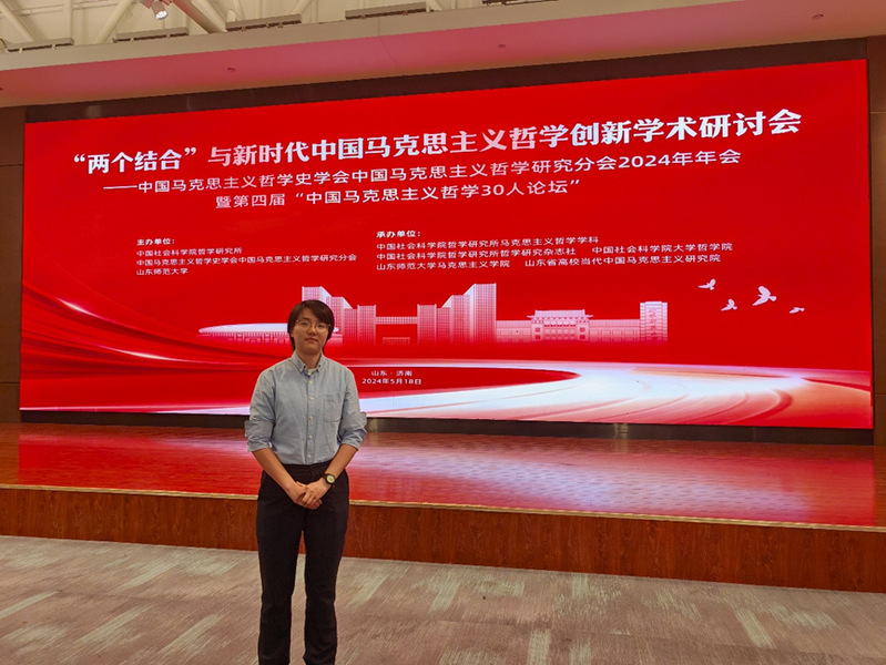 习近平总书记指出:“只有把马克思主义基本原理同中国具体实际相结合、同中华优秀传统文化相结合,坚持运用辩证唯物主义和历史唯物主义,才能正确回答时代和实践提出的重大问题,才能始终保持马克思主义的蓬勃生机和旺盛活力。”“两个结合”深刻总结了中国共产党百余年来推进理论创新的基本经验,阐明了马克思主义在中国创新发展的内在机理。在迈向全面建成社会主义现代化强国的新征程上,深入探讨“两个结合”与新时代中国马克思主义哲学创新,对于开辟马克思主义中国化时代化新境界、更好发展当代中国马克思主义哲学具有重大理论和现实意义。为此,2024年5月17日-19日,中国社会科学院哲学研究所、中国马克思主义哲学史学会中国马克思主义哲学研究分会与山东师范大学联合举办“‘两个结合’与新时代中国马克思主义哲学创新”学术研讨会——中国马克思主义哲学史学会中国马克思主义哲学研究分会2024年年会暨第四届“中国马克思主义哲学30人论坛”。论坛设置主旨发言、三个主题分论坛、硕博生交流等环节,以期为高校思想政治理论课教师、马克思主义理论工作者及广大青年学子搭建交流、研讨的学术平台。英国365集团硕士研究生张欣雨作为论文入选代表受邀参会。