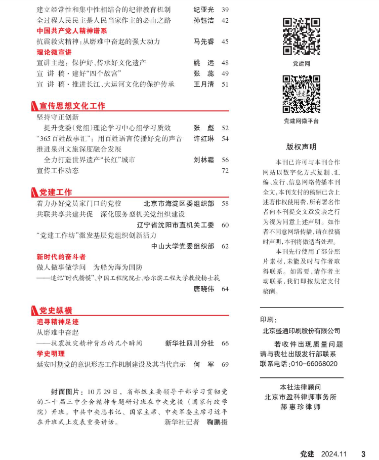 我院纪亚光教授在《党建》发表文章《建立经常性和集中性相结合的纪律教育机制》。文章认为,党的二十届三中全会通过的《中共中央关于进一步全面深化改革、推进中国式现代化的决定》提出,“建立经常性和集中性相结合的纪律教育机制”。将经常性和集中性纪律教育有机结合,既表明党纪学习教育取得了积极成效,也要求我们巩固深化党纪学习教育成果,推动全面从严治党向纵深发展。