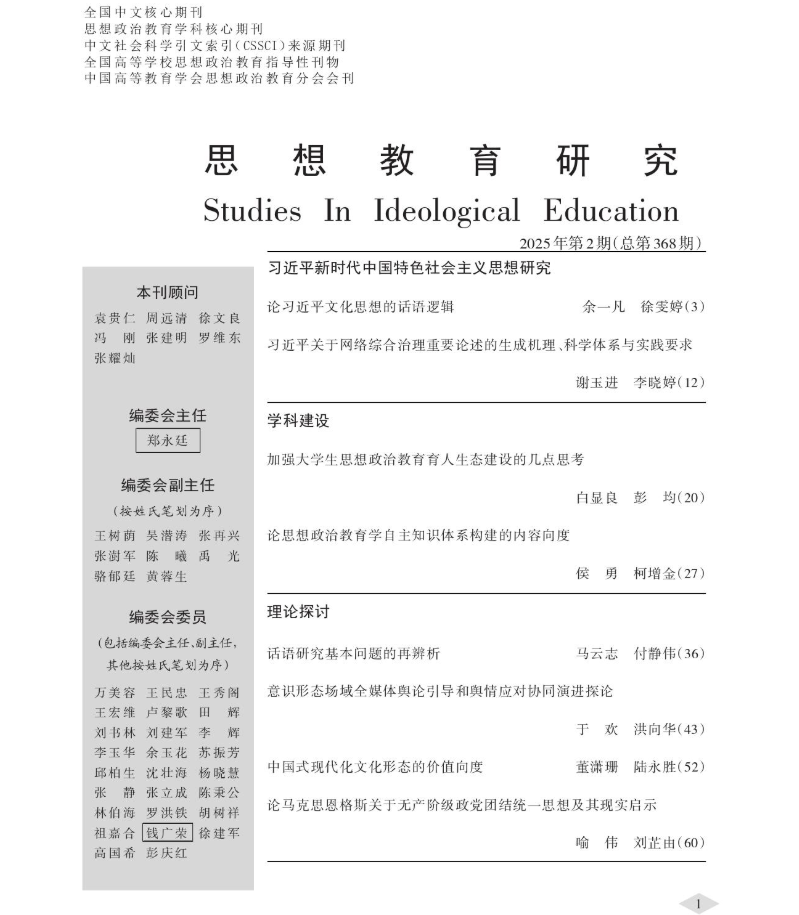 我院余一凡教授在《思想教育研究》发表文章《论习近平文化思想的话语逻辑》。文章认为,话语在思想的形成发展及阐释传播过程中扮演着重要角色。习近平文化思想围绕“新时代坚持和发展什么样的中国特色社会主义文化、怎样坚持和发展中国特色社会主义文化”这一话语主题,遵循“为何这样说话——为谁这样说话——具体说什么话——应该怎样说话”的逻辑理路,以回应实践诉求促进话语生成、以坚持人民至上彰显话语立场、以聚焦文化发展构筑话语体系、以善用语言艺术完成话语表达,创造了合目的性、合道义性、合规律性、合审美性的崭新话语形态,是用中国话语阐释中国实践的时代典范。