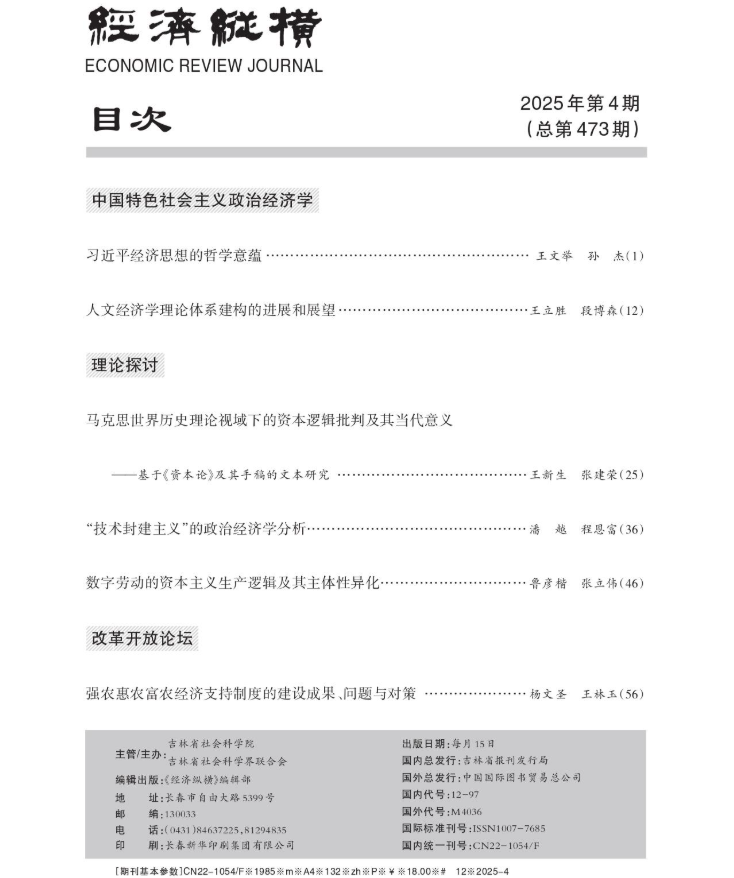我院王新生教授在《经济纵横》发表文章《马克思世界历史理论视域下的资本逻辑批判及其当代意义——基于<资本论>及其手稿的文本研究》。文章认为,世界历史理论不仅是马克思揭示资本逻辑世界历史生成的思想成果,也是构成其资本逻辑批判的理论视域。基于这一视域,马克思在《资本论》及其手稿中探讨了资本逻辑的历史进程、现实效应及未来限度,揭示了资本逻辑是一种以多数人的贫穷为代价,最大化占有剩余价值,并最终对人进行统治和奴役的剥削逻辑的实质。据此,马克思对资本逻辑展开了现实、历史及价值的多维批判,呈现了深入把握资本逻辑的世界历史向度。在仍未摆脱资本逻辑统治的当今世界,马克思资本逻辑批判中蕴含的丰富而深刻的理论资源和哲学智慧,对于透视当代资本主义变化、助力中国特色社会主义建设、探索现代化发展新可能,并最终促进人的自由全面发展具有不可忽视的世界历史意义。