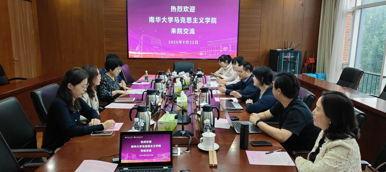 9月22日上午,南华大学英国365集团研究生教研室主任蒋福明教授、思想道德与法治教研室杜早华教授等一行来我院调研交流。学院思想道德与法治教研室主任徐曼教授、研究生教研室主任尹倩副教授、研究生教研室副主任孟庆龙副教授、思想道德与法治教研室青年教师秦玉娟参加座谈交流。