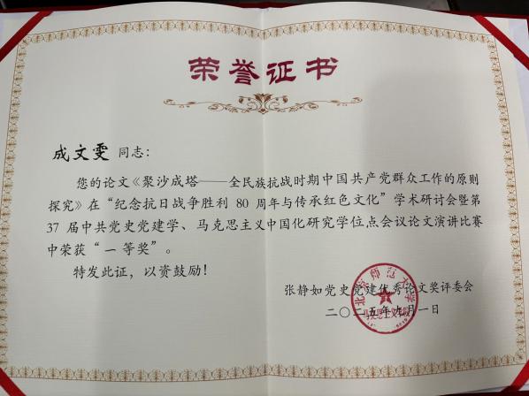 我院硕士研究生成文雯受邀参加“纪念抗日战争胜利80周年与传承红色文化”学术研讨会暨第37届中共党史党建学、马克思主义中国化研究学位点会议会议